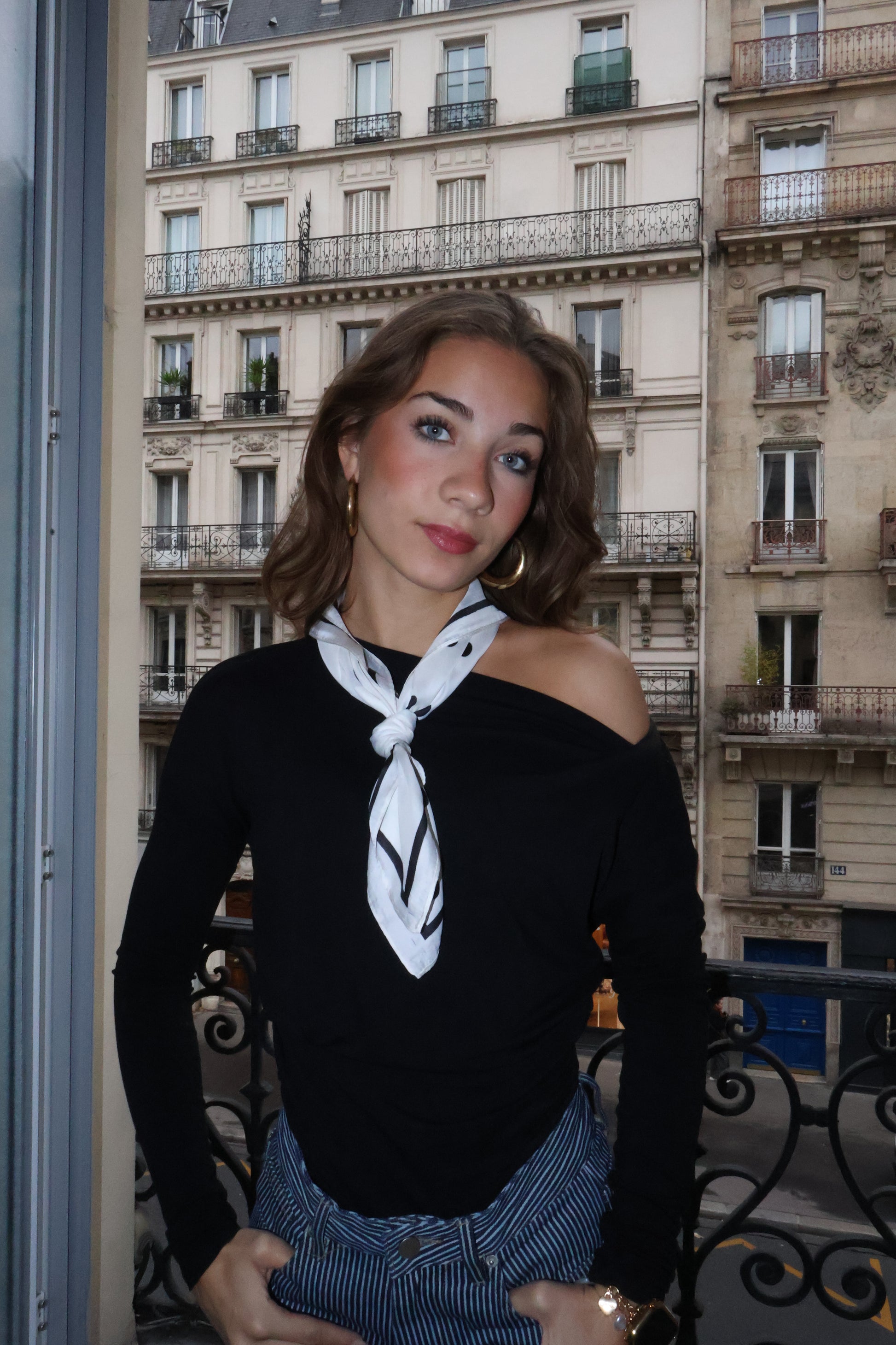 wear it tucked into high-waisted jeans with a silk scarf for a Parisian vibe (like in the photo), or layer under a blazer with chunky gold earrings for a polished work-to-dinner look.
